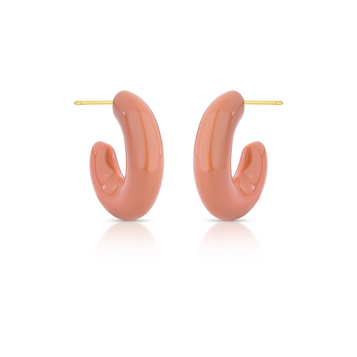 O brinco apresenta um formato orgânico com linhas suaves e contemporâneas, criando um visual marcante e atual. Seu acabamento resinado na cor coral adiciona um toque de cor elegante e versátil. Uma peça perfeita para quem busca estilo com conforto. O brinco acompanha um par para uso imediato.