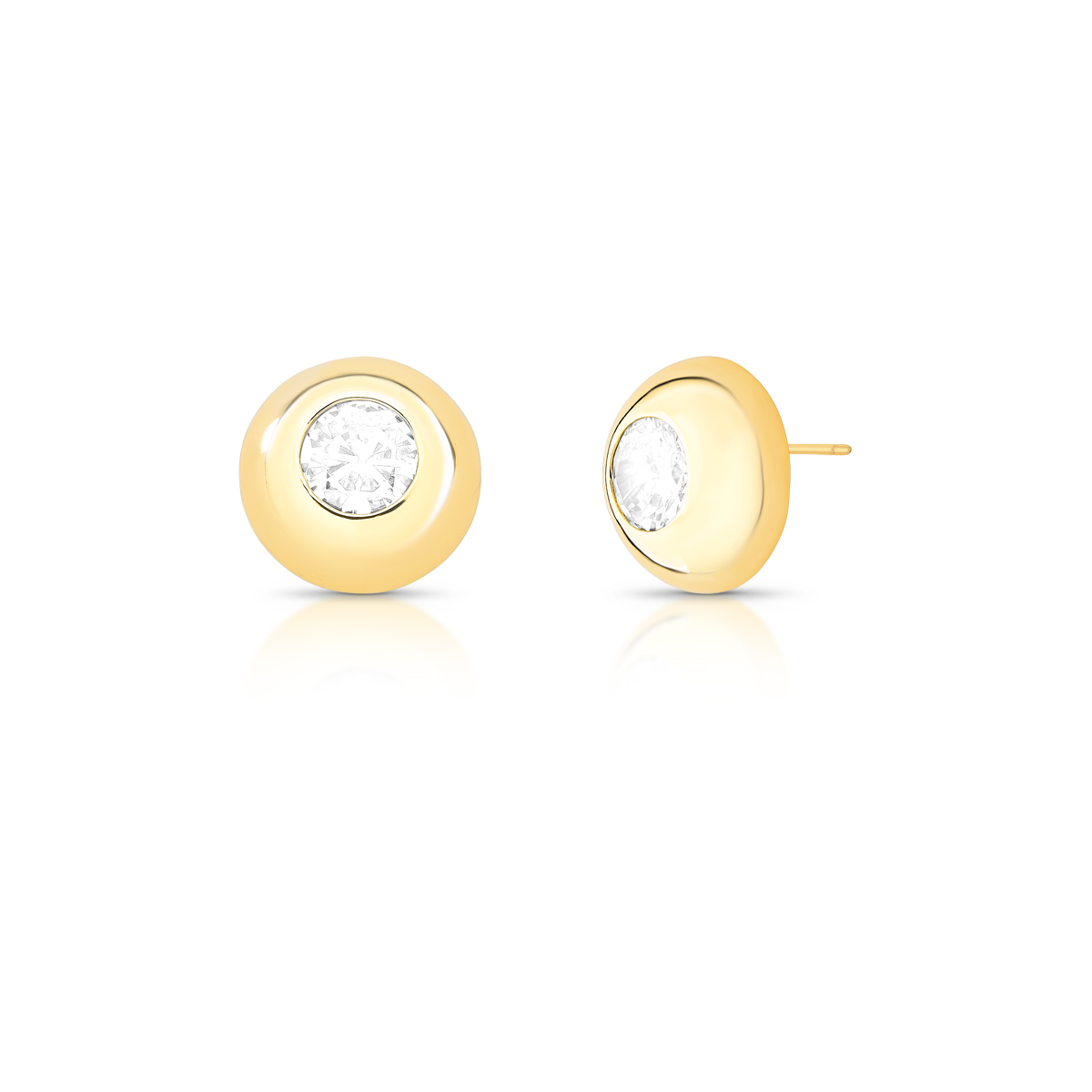 O brinco traz um cristal central em destaque, envolvido por uma base arredondada banhada a ouro, criando um efeito moderno e delicado. Uma peça versátil e indispensável no porta-joias, perfeita para qualquer ocasião.