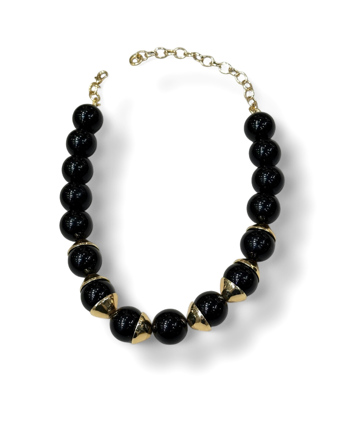 COLAR BOLAS RESINA PRETO DETALHES DOURADO